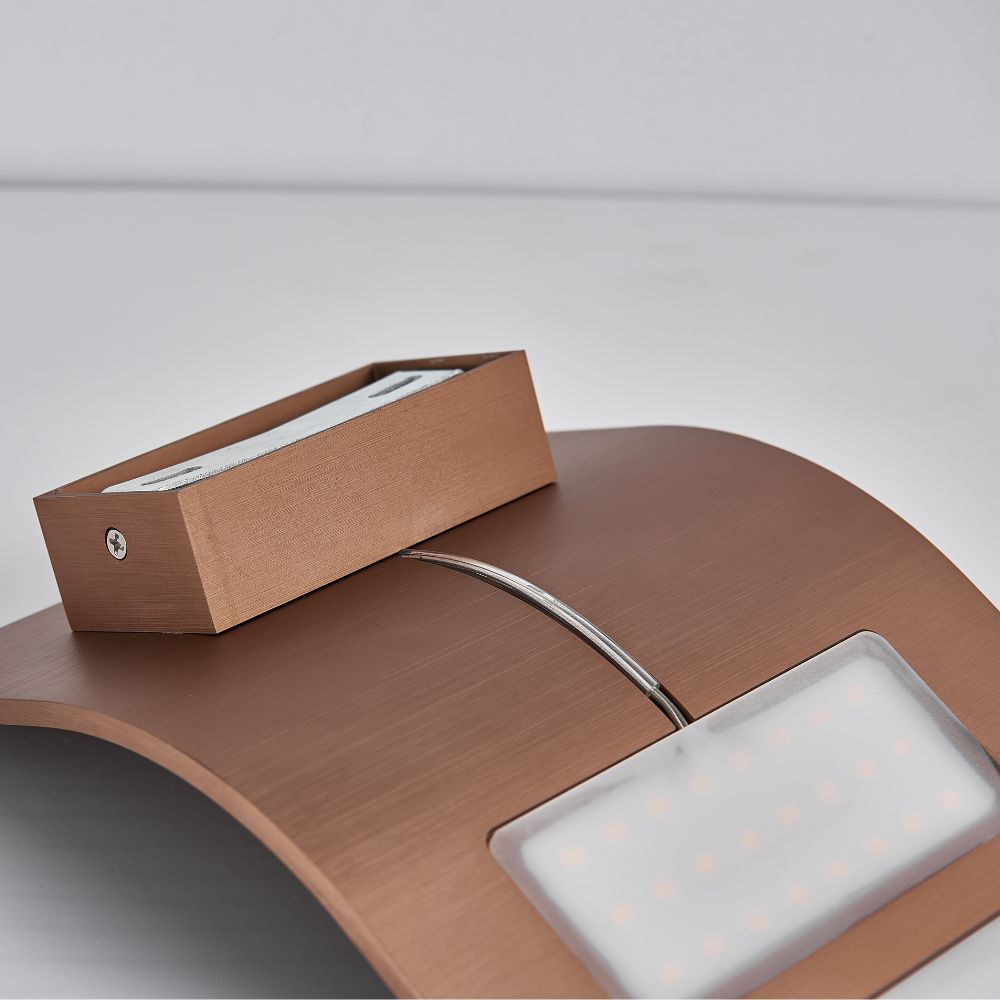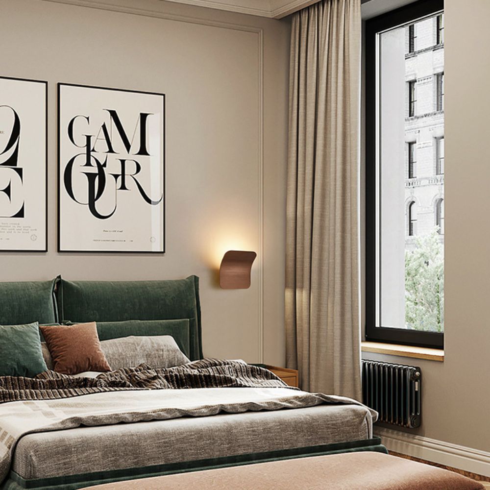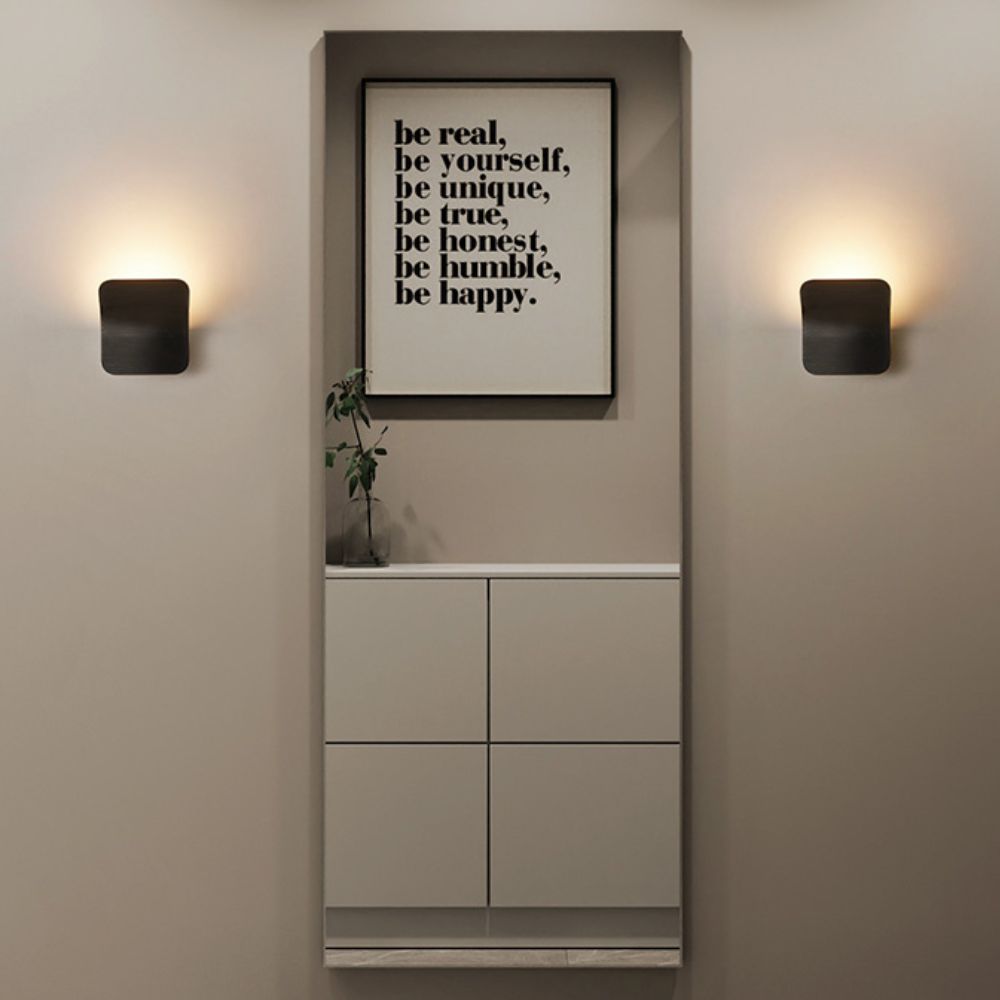 De Freesia wandlamp is een vierkant ontwerp en zacht afgeronde hoeken. Het armatuur buigt subtiel voorover, waardoor het licht schuin langs de muur valt en een elegant, indirect lichteffect creëert.